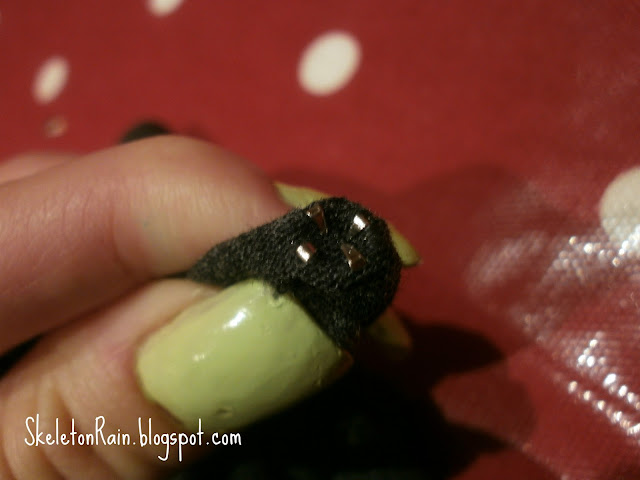 I was first enticed by the name of this nail polish. I don't own a metallic black/silver/grey. This one has a silver glitter to it. And surprisingly, a slight red glitter which really adds depth to it.